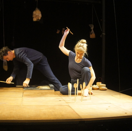 Ce spectacle pour les tout-petits est une véritable bulle de calme propice à l’éveil des sens et à l’écoute de l’autre. Peuplée des sons des corps en mouvement, des matières frottées, glissées, une grande table devient alors la scène de paysages éphémères, simples et magiques à la fois. Deux interprètes déplacent, remuent, touchent, dans le plus grand silence, différentes matières naturelles : bois, tissu, papier, fil… Les mains et les regards deviennent une invitation à entrer en relation. Curieux de tout et guidés par leurs sensations, les enfants peuvent alors prendre part à cet échange pour s’émerveiller de ces petits moments de bonheur pur et simple.
