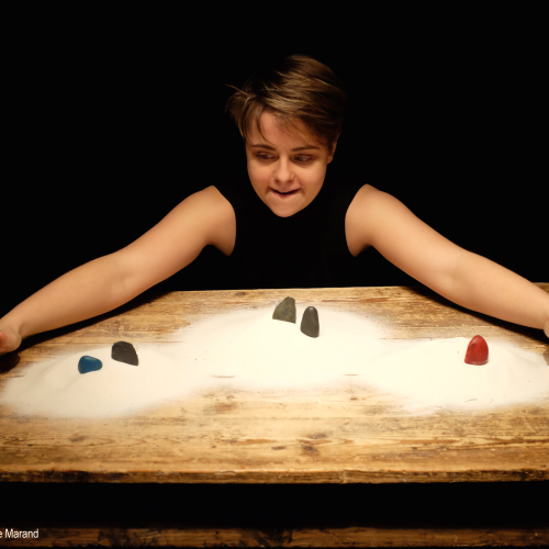 Curieuse et passionnée, Zoé Grossot nous fait partager son émerveillement devant l’astrophysique et la paléoanthropologie. Les sciences proposent une autre manière de voir le monde, un changement de perspective. Certaines informations la bouleversent, d’autres l’émeuvent. Ce qui la guide, c’est l’urgence à dire la poésie de ces thématiques. Dans un univers intimiste fait de matières brutes, la jeune femme nous raconte l’origine de tout, et donc forcément nous questionne sur qui nous sommes aujourd’hui et sur notre manière de voir le monde.